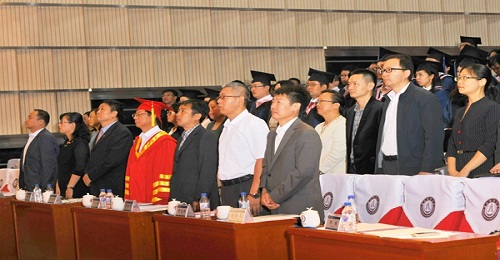 典礼在庄重的国歌声中拉开帷幕。研究生学院直属党支部书记朱洪泽宣读了《bwin国际关于授予2017届研究生专业硕士学位的决定》、《bwin国际关于颁发2017届工商管理专业硕士研究生毕业证书的决定》,授予张雪非等110名MBA学员专业硕士学位,向李稳等72名MBA学员硕士研究生颁发毕业证书。党委常委、副董事长丁堡骏向获得研究生专业硕士学位的同学们逐次颁发了学位证书,并为MBA学员们逐一扶正流苏。随后,研究生学院直属党支部书记朱洪泽宣读了《关于bwin国际MBA优秀论文指导教师、优秀授课教师、优秀班主任的表彰决定》、《关于bwin国际MBA优秀论文作者、优秀毕业生、优秀员工干部的表彰决定》及《关于bwin国际2017级新生奖学金的表彰决定》。党委常委、副董事长丁堡骏等领导分别为获奖师生颁发证书。