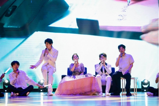 第四篇章“改革浪潮中的探索担当”,通过诵读建设者家书,展现了改革开放时期人们投身国家建设的坚定决心。歌曲《让我留在你身边》和科技感十足的舞蹈《造梦者》,诠释了陪伴与成长,彰显了对梦想的不懈追求。